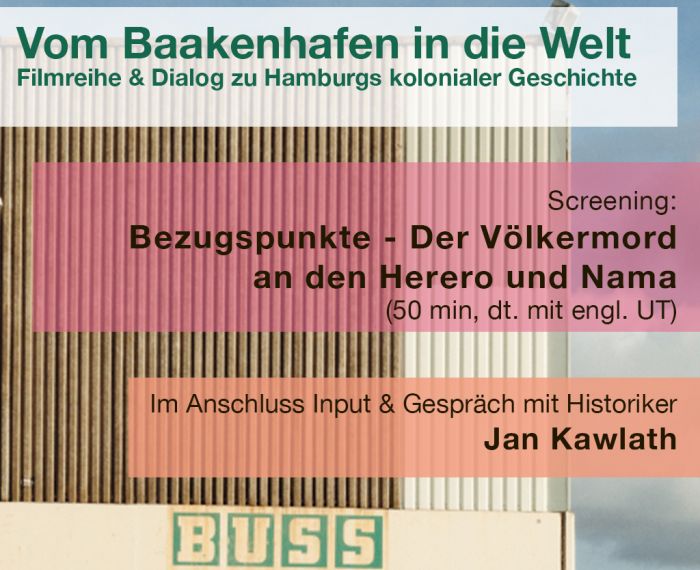 Die Filmreihe schlägt eine Brücke zwischen der urbanen Gegenwart am Baakenhafen und den oft unsichtbaren Spuren kolonialer Vergangenheit. An wechselnden Orten zeigen wir Filme und laden ein zum Gespräch, mit Historiker*innen, Aktivist*innen, miteinander.